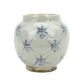The rustic, yet geometrically styled design of the Jingdezhen Hand-Painted Jar with Characters works with a variety of aesthetics. This porcelain jar with a wide opening is an antique reproduction featuring a primitive collection of lines that have a scarab-like arrangement. This Hand-Painted Jar with Characters is crafted in Jingdezhen, China, a world renowned region for high quality ceramics.