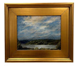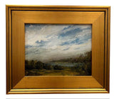 Original landscape oil on canvas painting in a gold frame by Diane Bolone.