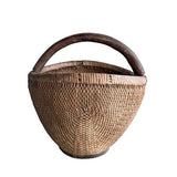 Our vintage collection of willow round handle baskets were made in the Qingdao region of China. This traditional fishing port city along the Yellow Sea has grown into a modern metropolis, but the basket, made from artisan hands, speaks to the traditions of the city's history. No baskets are alike. Size and condition vary.