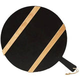These reclaimed wood boards are distinguished by two strips of contrasting timber. For a modern spin, the serving board boasts a sleek black finish and the slats have maintained their exquisite organic beauty. Ideal for use as a charcuterie plate, showcasing bread, cheese or fruit, the wood bread board can also be used as a decorative kitchen accent.