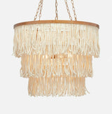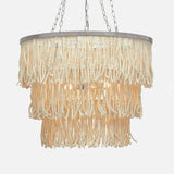 We've given abaca a deconstructed, casual look. Rather than weaving this natural fiber, we've used short pieces of the rope to organically line the three-tiered Arricka. This chandelier-in Bleached or Blue-brings vivacity and movement to a space- the metal rim adds a polished touch to this more casual piece.