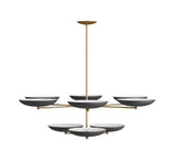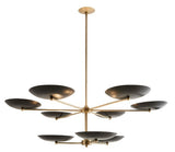 The new two-tiered Griffith Chandelier provides a bold presence in any room. Inspired by the grand public spaces of the mid0century era, this architectural chandelier is designed with bronze shades accented by a contrasting antique brass finish steel frame. this fixture's upward facing plates reflect light, create a warm, even glow. Damp-rated, although limited covered outdoor condition may affect the finish. Finish will vary.