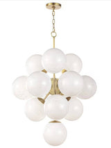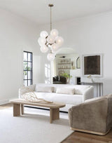 Mid-Century Modern meets French glamour in La Dame chandelier. Its swirl glass globes will illuminate a romantic glow providing an ethereal look. At 3 feet long, this statement piece would 'wow' in a foyer or dining room with high ceilings. This chandelier is from Regina Andrew Detroit.