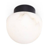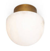 The Parker is a deco-inspired alabaster flush mount light featuring a striking globe made of natural alabaster and a metal canopy in brass or black. Let the warm and diffused glow of the Parker illuminate your home in style. The fixture is from Regina Andrew.
