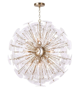 Create a glamorous modern statement in your dining room, entryway, or master bath with Poppy from Regina Andrew Detroit, a stunning sputnik-style orb chandelier. Candelabra bulbs provide beautiful ambient illumination through undulating glass discs affixed to rods of varying lengths that provide dimension. Available with white glass and bronze finish or clear glass with a natural brass finish.