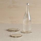 Add a touch of class to your table and protect it too with our cast aluminum coasters. Each 4" round disc features a tiny decorative tab detail resembling the handles on the larger partyware in the collection. These slightly textured coasters can also serve as candle plates. Size: 4” x 1/4”. each.