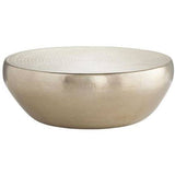 This iron cocktail table features a vintage nickel finish and repoussé ringed detail on the top surface. Also available in small (4414), side table (4503), and bronze (4007). finish will vary.