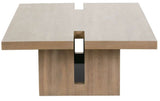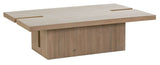 The Wright Cocktail Table is made of rubberwood solids and a flat cut acacia veneer, finished in fawn and has adjustable floor glides.