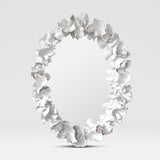 Leaf coral was the inspiration for this remarkable piece. Hours of molding and hand painting are necessary to fashion the Coco's undulating oval of white coral. This mirror can be hung in either direction.