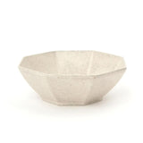 The Mino Ware style series is crafted in Japan. This style has been make for centuries. Geometric-shaped plates and bowl in muted ivory for an interesting yet simple display that offers depth through light and shadows of soft angles.
