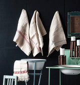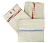 Hungarian farmers took pride in the colors and designs of their grain sacks, which were unique to each farm. These handmade, linen sacks were reused each year to bring harvests to market. These decorative sacks have been made into a charming vintage decorative kitchen towels.