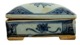 Chinese export style rectangular and square boxes having domed lids and calligraphy scratched into interior glazed surface.