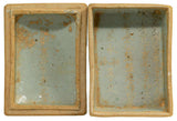 Condition: Very Good, glaze and surface irregularities typical of hand-potted wares; smaller rectangle lid having cracked edge on underside; occasional cracks to glaze and crazing; occasional tape residue.