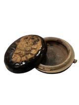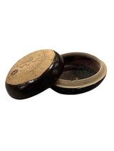 Asian Thai Sukhothai Sawankhalok brown glazed pottery box with flower design on the cover, antique. Sold individually.