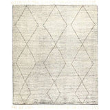 The Dolomite rug brings texture and versatility to both global and modern spaces. Crafted of natural wool, the hand-knotted rug features a plush, ridged feel and an asymmetrical trellis design in cream and black tones.