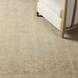 The Michael rug emanates traditional elegance, lending a soft and serene look to transitional homes. The Verity area rug features a faded Oushak design cream, gray, and light sage tones. This hand-knotted wool rug grounds living spaces with a classic, earthy look. Crafted of durable wool and elegant viscose, this accent piece perfects low traffic areas of the home such as formal living and dining spaces or bedrooms
