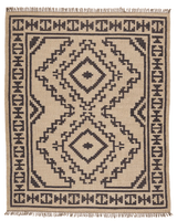 This globally inspired collection features an assortment of Southwestern styles that are designed for the contemporary home. The handwoven Jaima rug offers a fresh take on a bold and open tribal medallion in easy-to-decorate colors of light beige and deep black. Crafted of durable and texture-rich jute, this natural, flatweave rug grounds spaces and adds a worldly vibe to any room.