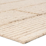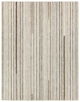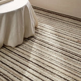 Earthy white and beige tones come together in a grounding linear design, infusing the Sabbia rug with contemporary elegance. Handwoven from a luxe wool pile, its luminous sheen highlights every intricate detail.