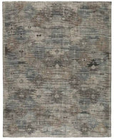 The Salerno Rug offers intricate and delicately designed global patterns to the modern home. A dynamic tribal motif creates an all-over design on the artistically distressed Salerno area rug. In a black, tan, white, and blue colorway, this durable hand-knotted wool accent blends a timeless craft with contemporary charm. 100% wool.