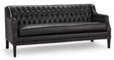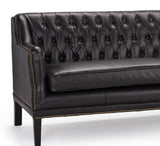 The essence of cool is brought to life in Essex, with echoes of James Dean's famous black leather jacket. It features a one seat cushion for comfort, antiqued brass stud detailing, tapered wooden legs, and a beautifully tufted backrest. All of the fine details come together to make this sofa a timeless classic. This sofa is from Regina Andrew Detroit.