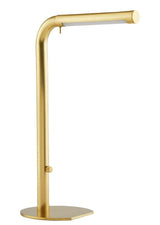 Our Sadie Lamp makes a sleek illuminator for any office space. The streamlined task lamp is created in antique brass steel with a white acrylic diffuser. The LED-integrated lamp is fitted with a pin detail, allowing it to swivel and direct light precisely where you need it