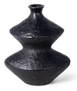 The blackened plaster finish of our Poe Vase is mottled with texture that is crafted to have an artisan, handmade feel. Place this sculptural, artistic vase as a contemporary centerpiece on a table, etagere or shelving unit.  The vase is from Regina Andrew.