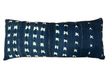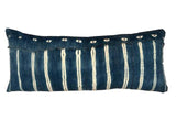 Authentic African Handwoven Bambara Mud Cloth Fabric From Mali. Traditional African mud cloth sheets are hand-woven with no two pieces of mud cloth being exactly alike, and the patterns vary from one piece to the next. Add a unique touch of texture to a bed, chair, or sofa with our Nomad Pillow, in indigo blue. Pattern on the front and solid on the back.