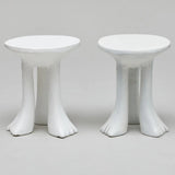 Vintage John Dickinson Mid-Century small white plaster African side/end tables, signed.