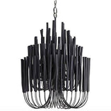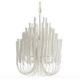 This rustically refined chandelier instantly transforms a space. The multi-tiered form features wooden dowels, finished in black or white, on curved and pliable iron arms. During installation, please ensure that all bulbs are not touching the dowels. If they are, gently press the arm one inch away from bulb to allow heat to properly disperse. Finish will vary.